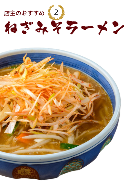 コクのあるみそのスープと、辛みのきいた白髪ねぎの相性が抜群の一品。シャキシャキした長ねぎの食感もクセになる、人気ラーメンです。